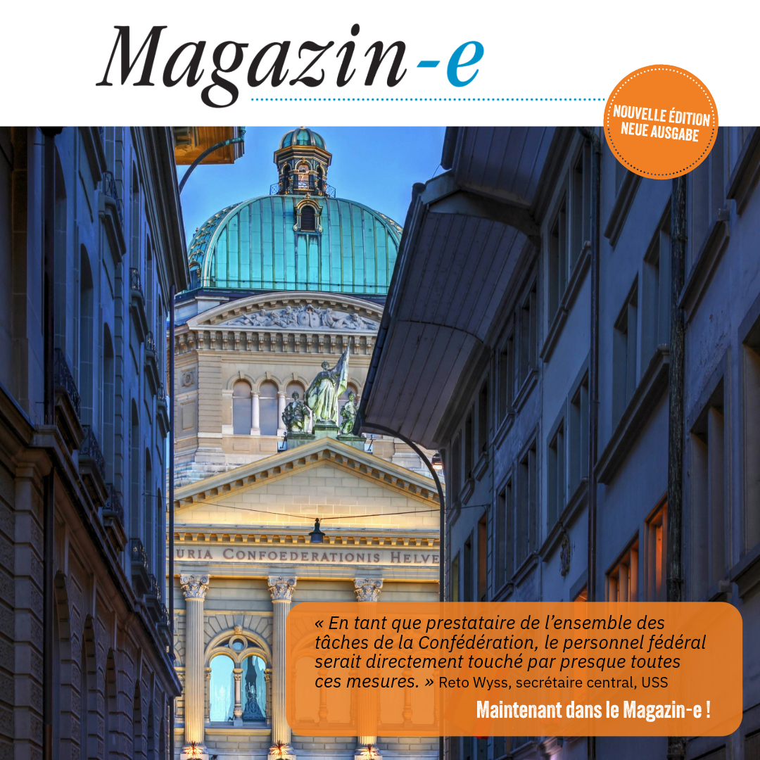 Depuis l’annonce du programme d’allègement budgétaire 2027, nous avons, en tant qu’association du personnel de la Confédération, uni·e·s nos forces et nous avons pu freiner la détérioration des conditions de travail du personnel fédéral.